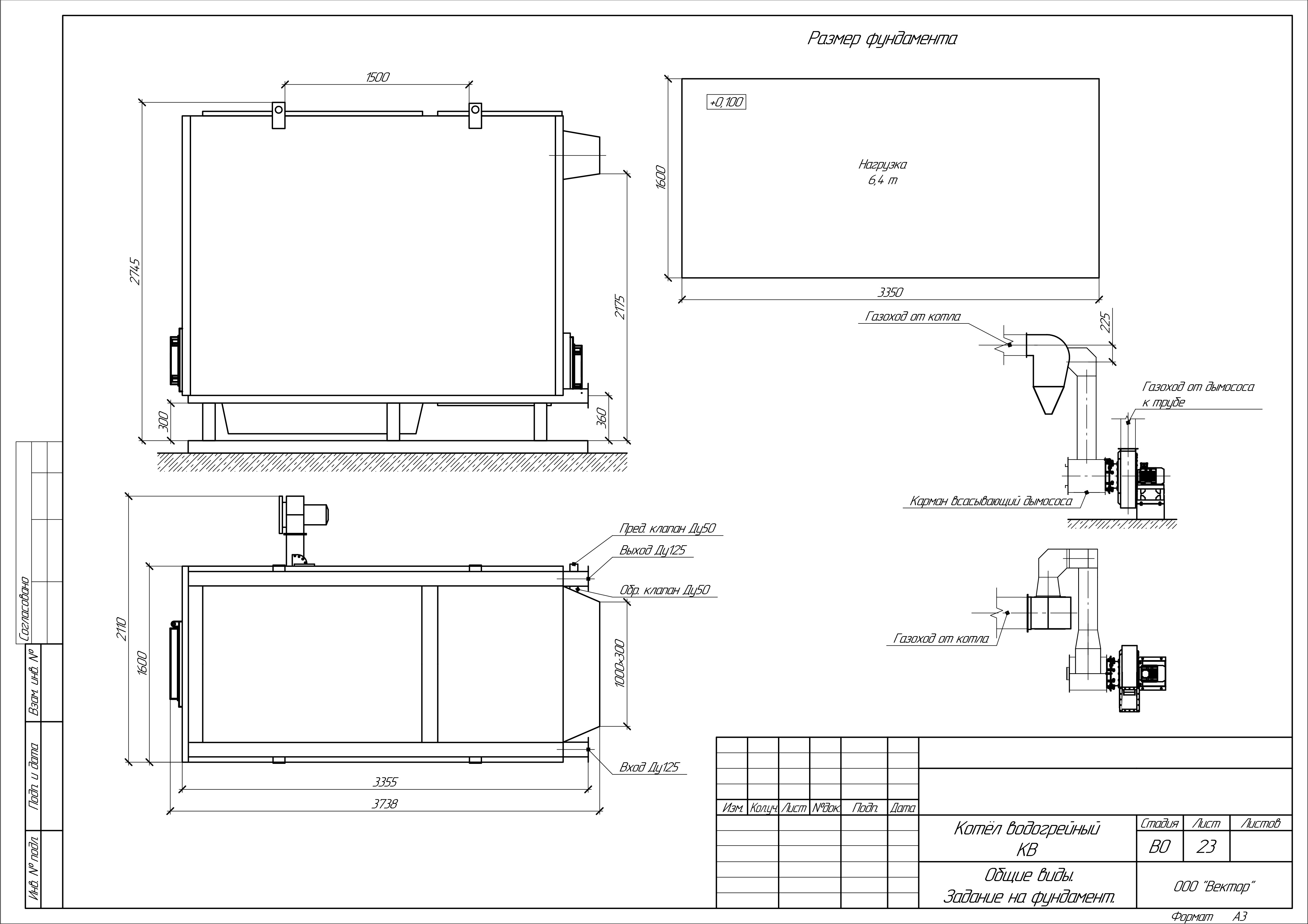 Угольный котел КВр-2,65 с колосниковой решеткой устанавливается на специально подготовленный фундамент и крепится анкерными болтами. Важно обеспечить ровную установку котла и обеспечить воздухоподачу к топке. Далее котел присоединяется к средствам водоснабжения, устанавливается вся запорная арматура и КИП, устанавливаются система отвода газов и элементы управления.